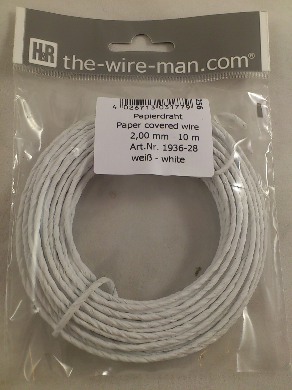 Papier draad 10 m. wit