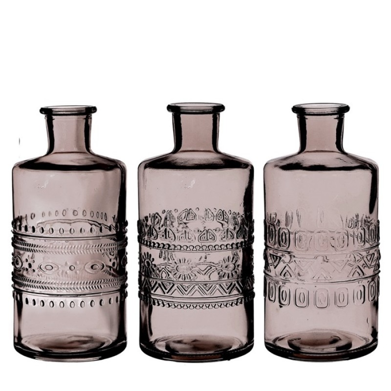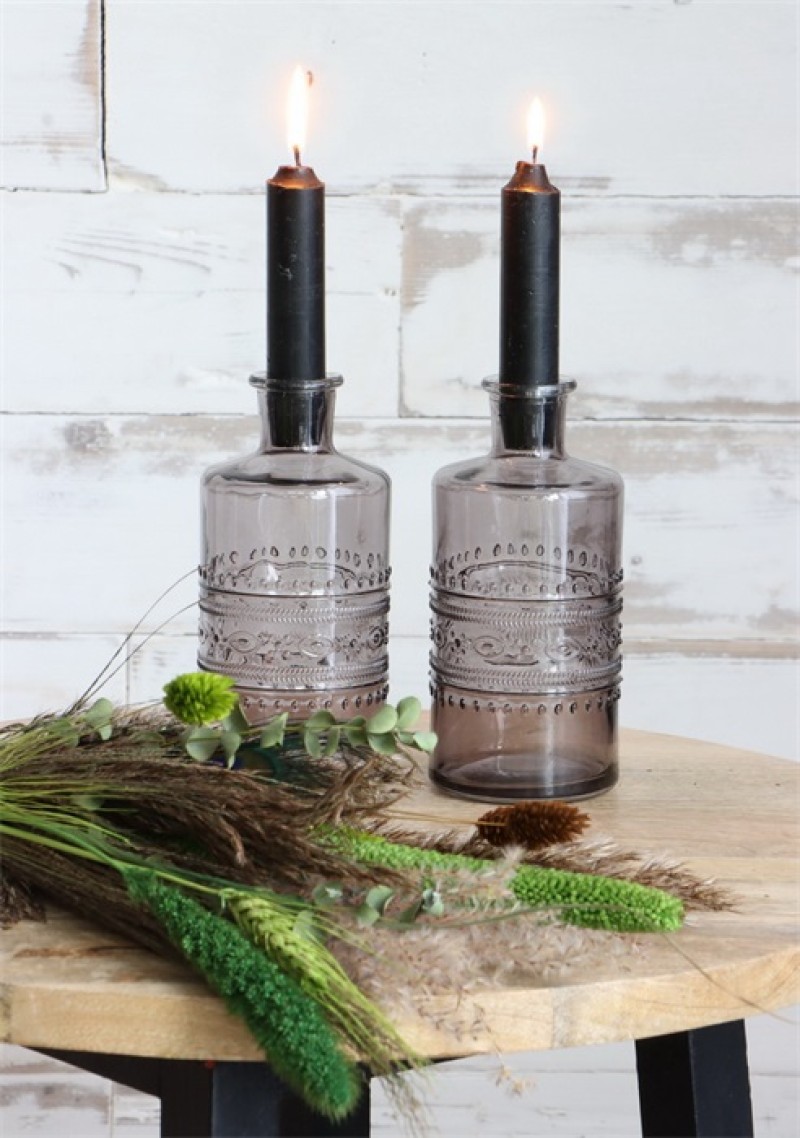 Gekleurde glazen fles porto grijs Ø7,5 h.14,5 cm