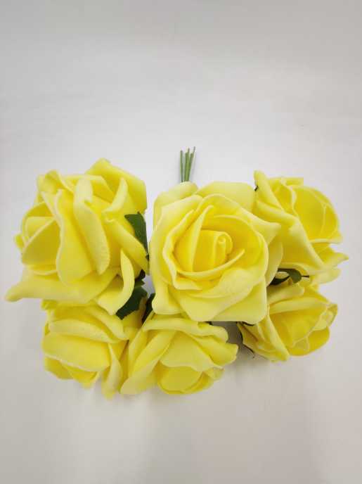 Foam roos 6 cm geel (6 st.)