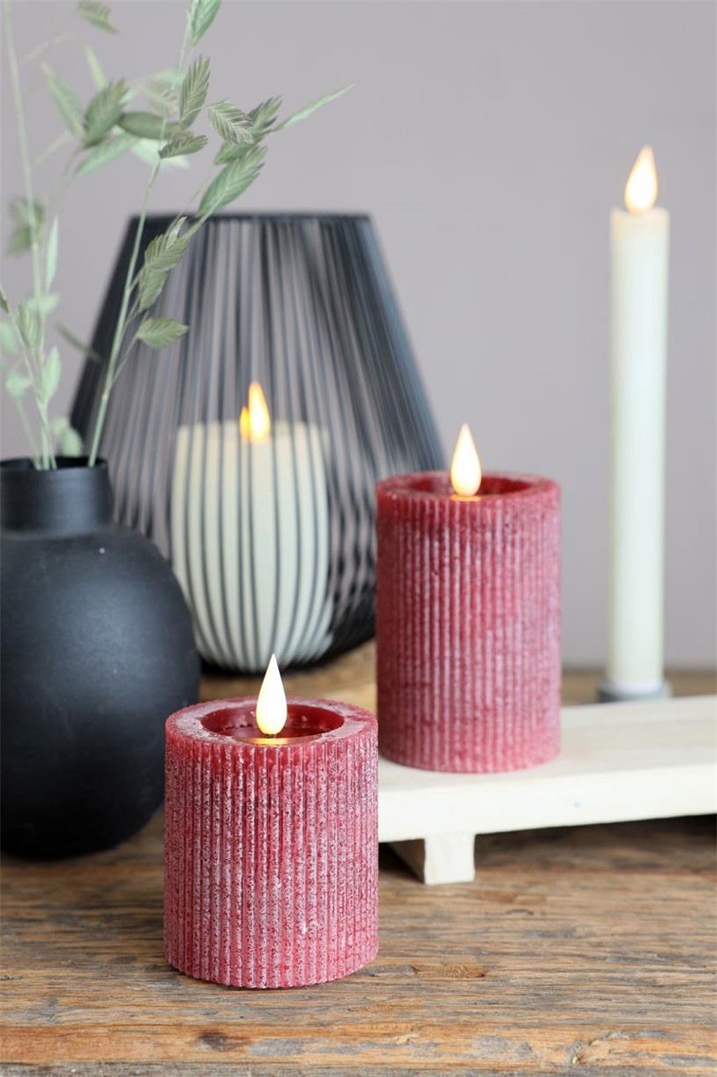LED kaars rustiek bordeaux H 10 cm Ø 7 cm