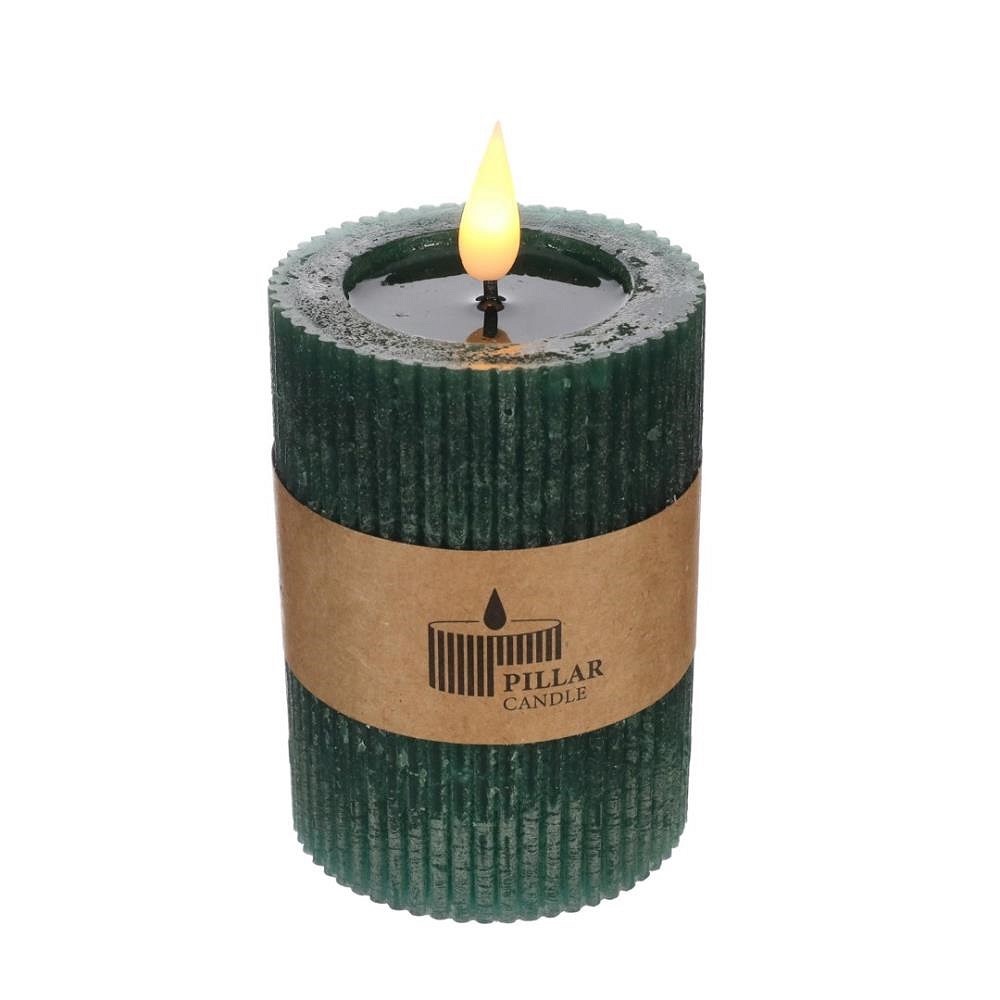 LED kaars rustiek mosgroen H 10 cm Ø 7 cm