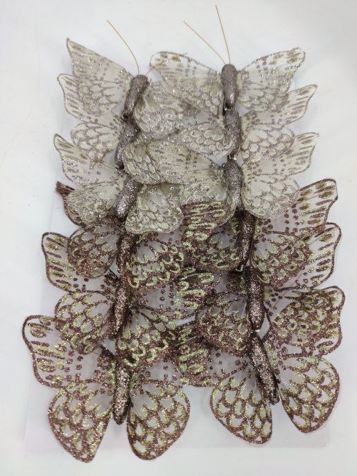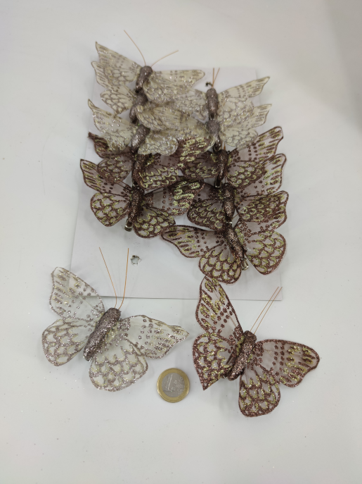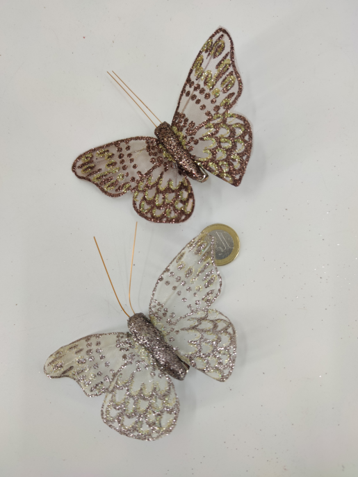 Vlinder 10x8 cm met clip koper en cream glitter 12 st.