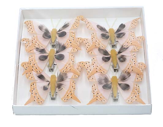 Vlinder 7.5 cm 6 st. roze oranje