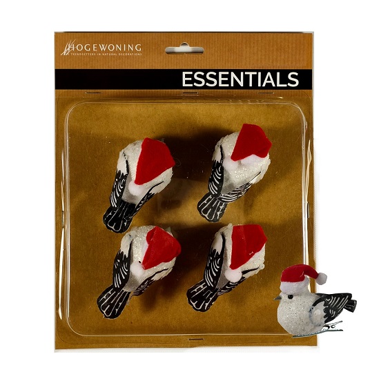 Vogels Xmas wit 8 cm met echte veren op clips 4 st.