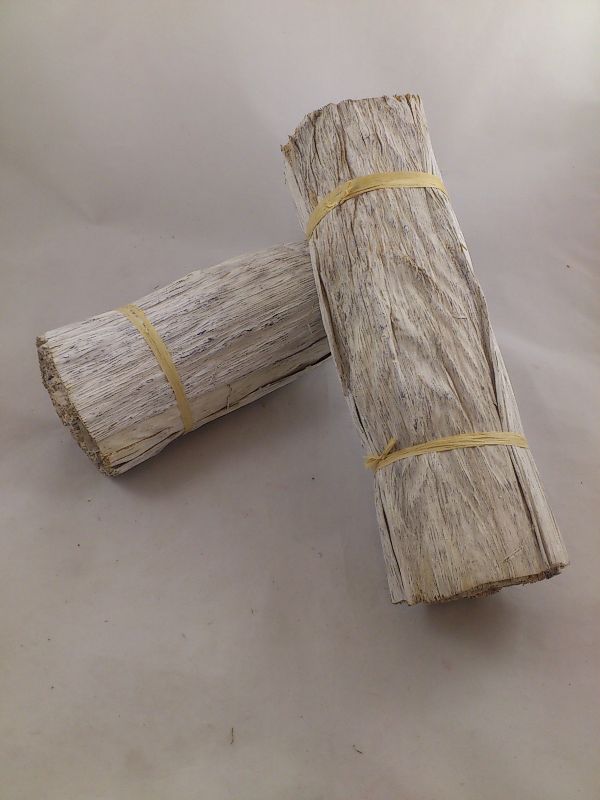 Bij de white-wash variant vanuit Afrika wordt het blad eerst gewhitewashed, nadien pas op rol gezet en vastgebonden.