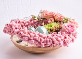 Schapenwol met binnenin een jute kern voor de stevigheid. Gemakkelijk om te verwerken. Scheurvast, kleurvast, lichtbestendig en waterproof.