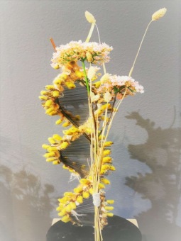 wol op streng met koperdraad: ø ca 5 mm. met vanbinnen een koperdraad . Deze koperdraad zorgt ervoor dat men de wol kan zetten in elke gewenste positie. Verkrijgbaar in lengte 33 m. op spoel