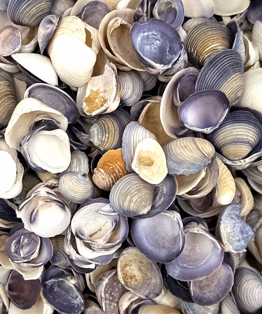 De Purple Cay Cay schelpen, ongeveer 2,5 cm groot, hebben een subtiele paarse tint.