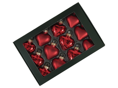 Kerstballetjes in glas hart 40 mm 12 st. red combi