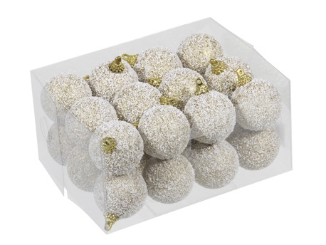 Kerstballetjes sneeuw-goud 40 mm 24 st.