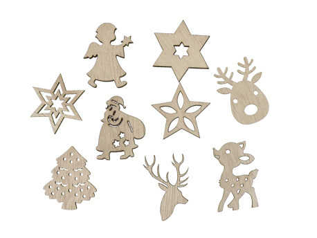 Houten decoratie kerst ca 4 cm ass. 9x8 st.
