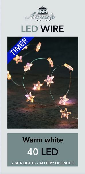 Verlichting LED warm wit sterren met timer 40 st.